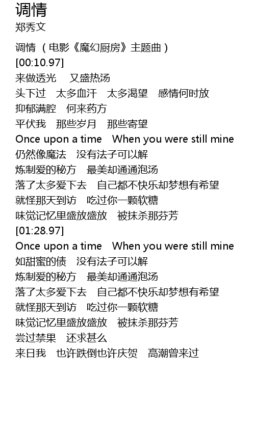 | [00:00.00] | 调情 (电影《魔幻厨房》主题曲) |