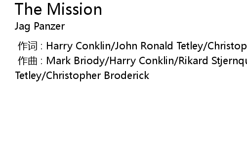 | [00:00.000] | 作曲 : Mark Briody/Harry Conklin/Rikard Stjernquist/John Ronald Tetley/Christopher Broderick |