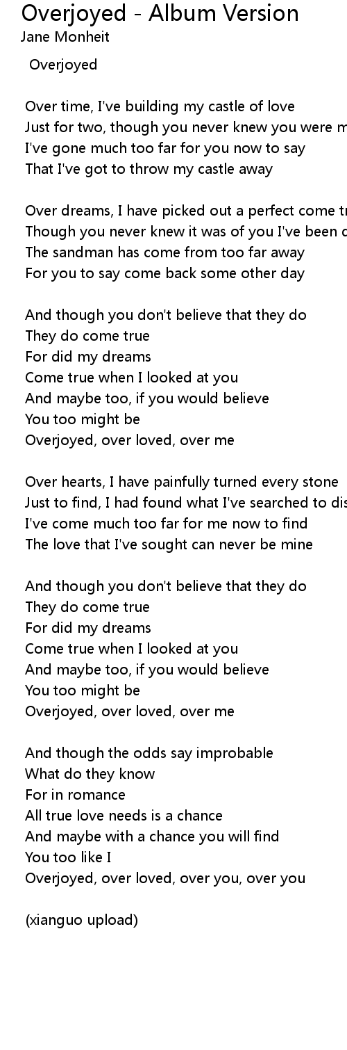 Overjoyed, over loved, over you, over you |