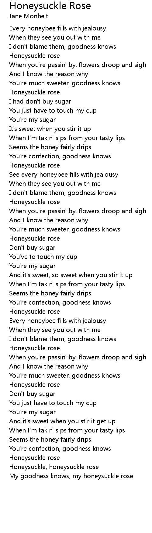 My goodness knows, my honeysuckle rose |
