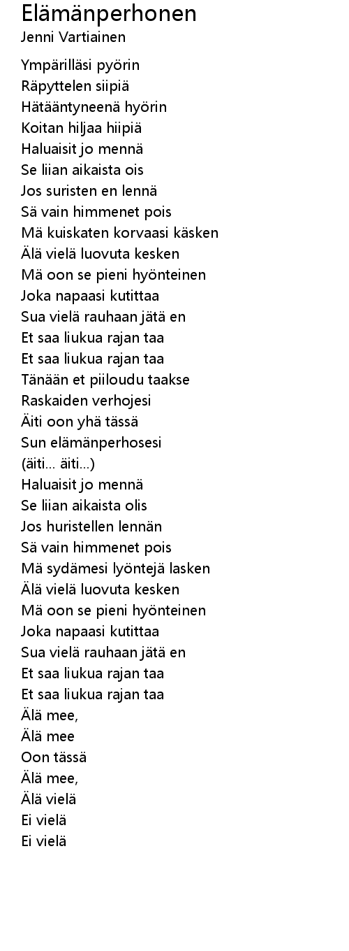| Song | Elämänperhonen |