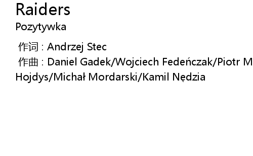 | [00:00.000] | 作曲 : Daniel Gadek/Wojciech Fedeńczak/Piotr Mordarski/Jonatan Hojdys/Michał Mordarski/Kamil Nędzia |