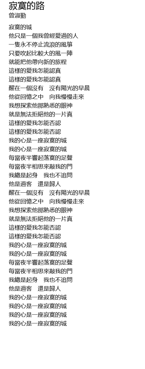 | [04:27.21] | 我的心是一座寂寞的城 |