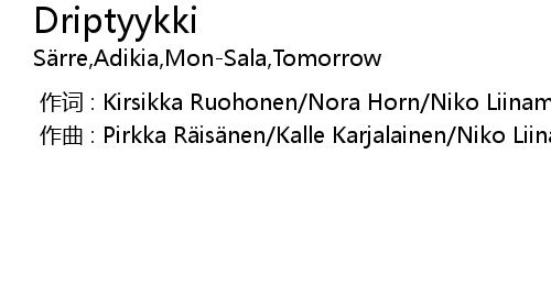 | [00:00.000] | 作词 : Kirsikka Ruohonen/Nora Horn/Niko Liinamaa/Miika Särmäkari |