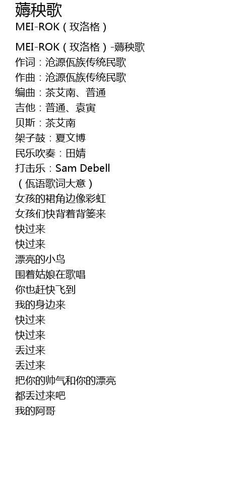 | [00:00.00] | MEI-ROK(玫洛格)-薅秧歌 |