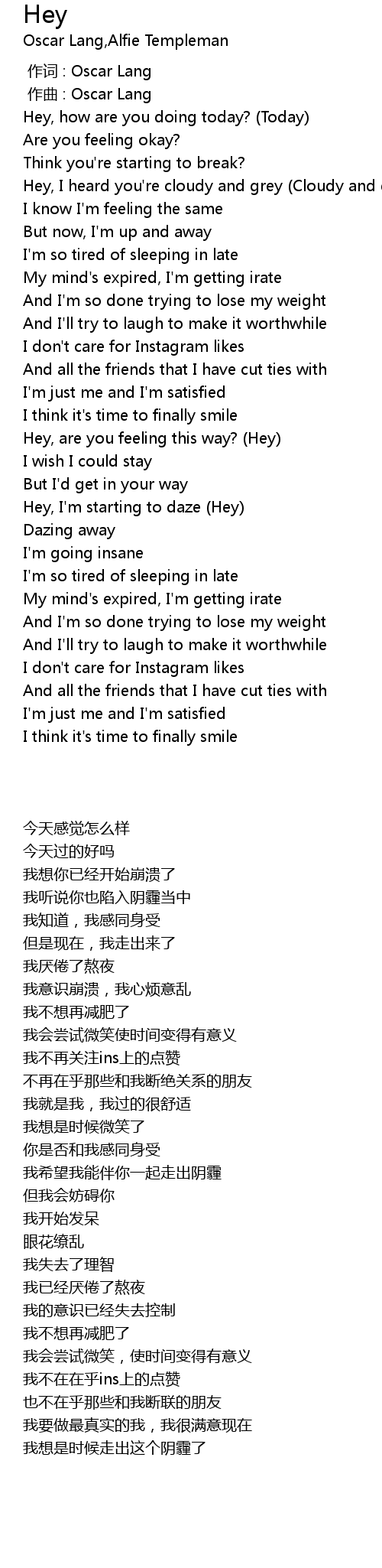 | [00:32.04] | Hey, how are you doing today? (Today) |