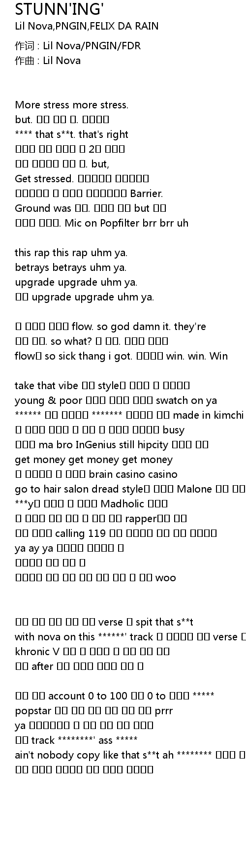 | with nova on this ******' track 다 빨아먹어 너네 verse 다 freaky uh | |