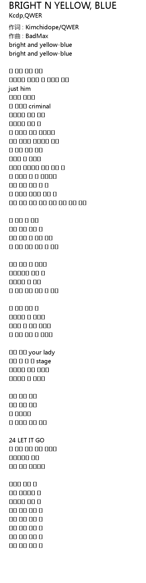 BRIGHT N YELLOW, BLUE Lyrics