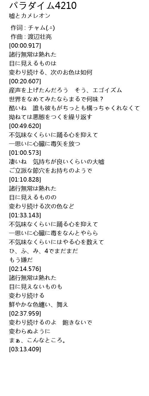 | [00:13.534] | 変わり続ける、次のお色は如何 |