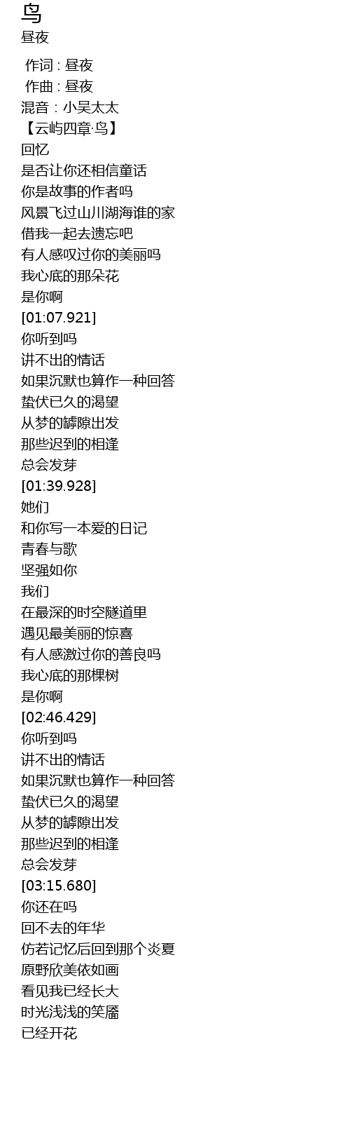 | [00:00.000] | 作词 : 昼夜 |
