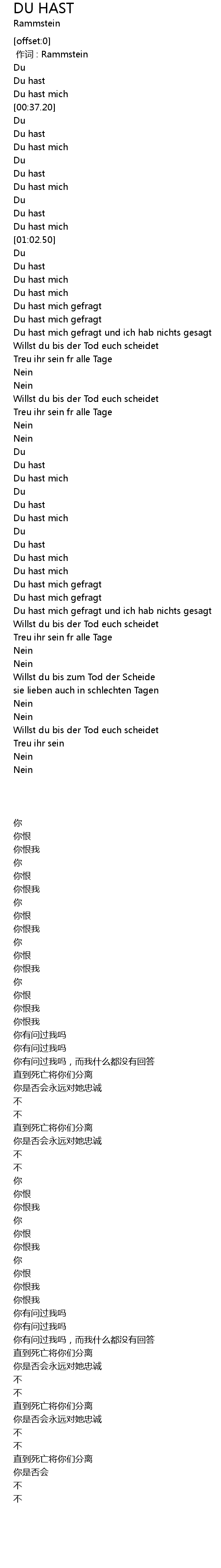| [00:40.360] | Du hast |