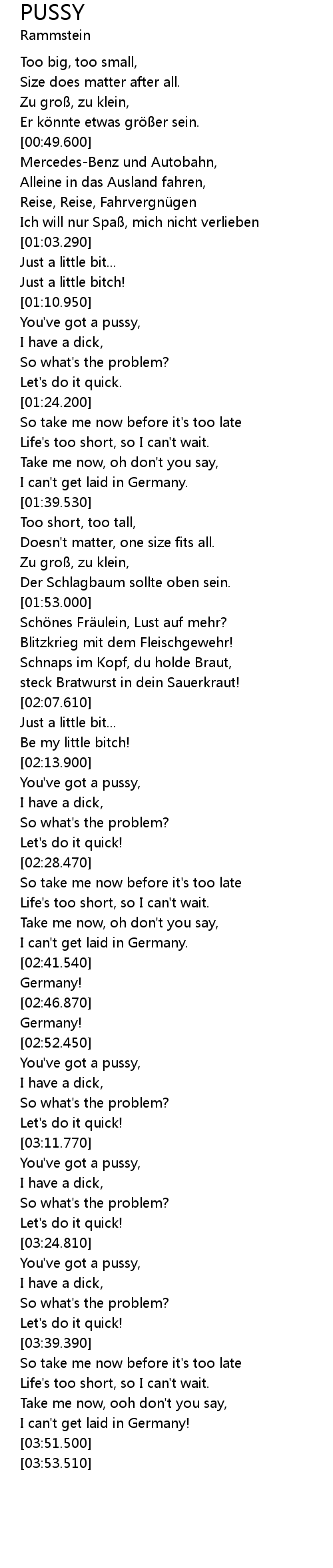 | [03:26.170] | You've got a pussy, |