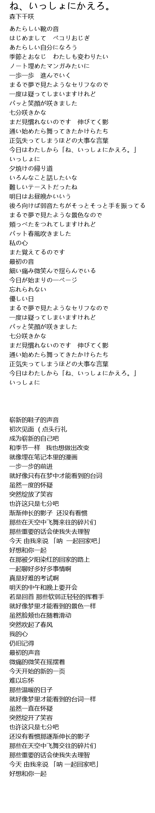 | Song | ね、いっしょにかえろ。 |