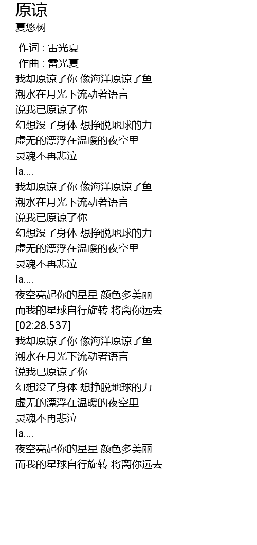 | [02:30.786] | 我却原谅了你 像海洋原谅了鱼 |