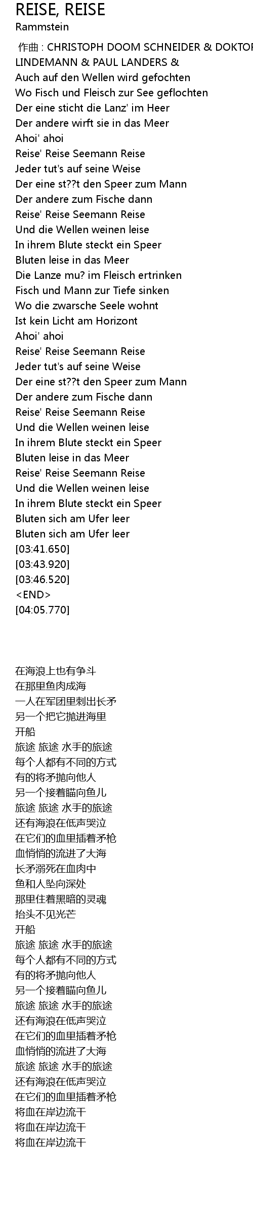 | [03:11.820] | Reise' Reise Seemann Reise |