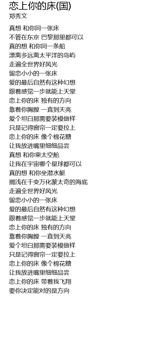 | [02:58.760] | 恋上你的床 带着我飞翔 |
