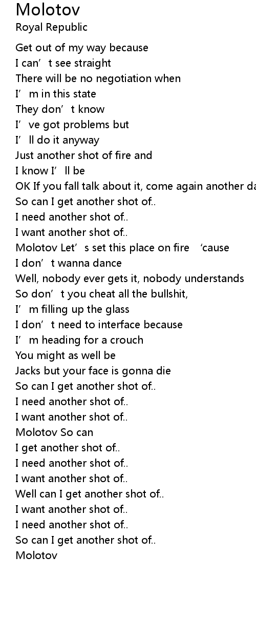 | Molotov Let' s set this place on fire ' cause | |