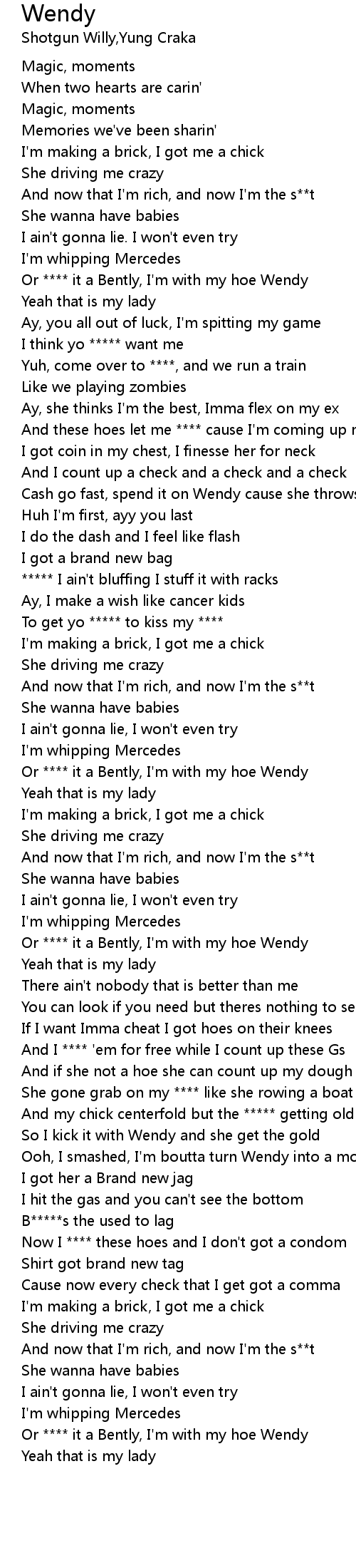 Ooh, I smashed, I'm boutta turn Wendy into a momma |