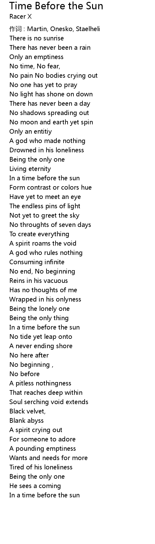 | In a time before the sun | |