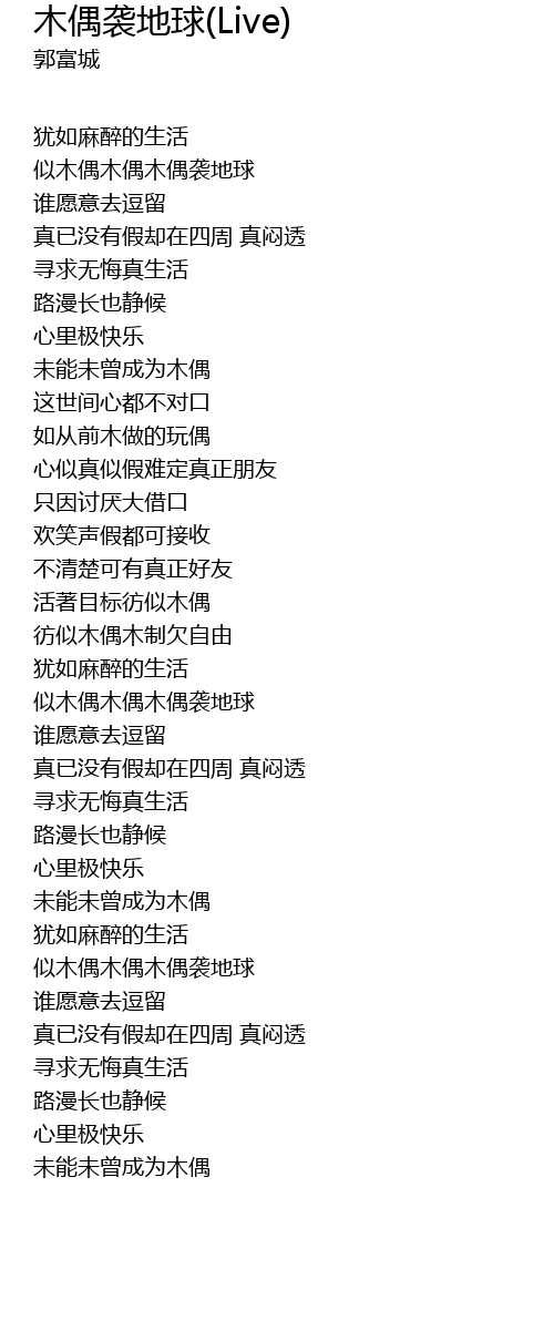 | [01:16.200] | 彷似木偶木制欠自由 |