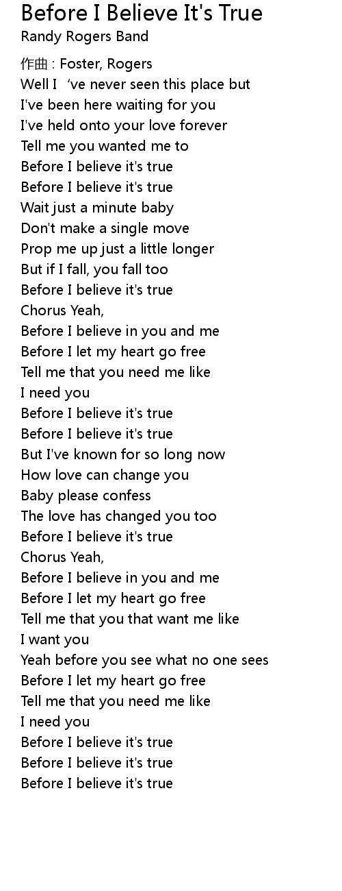 | Before I believe it's true | |