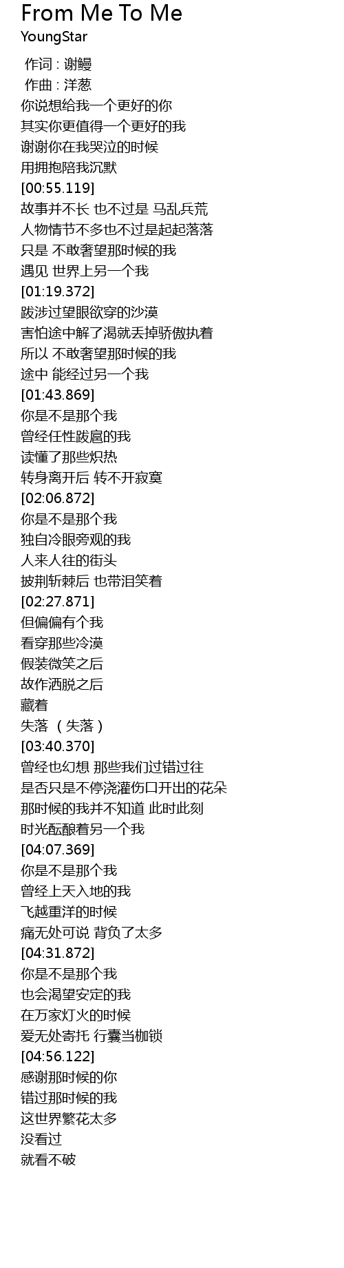 | [00:16.920] | 其实你更值得一个更好的我 |