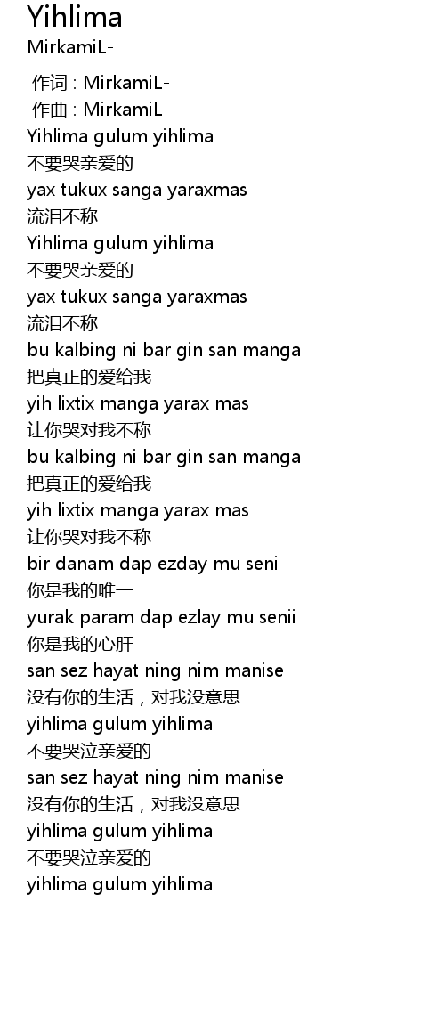 | [01:35.406] | yihlima gulum yihlima |