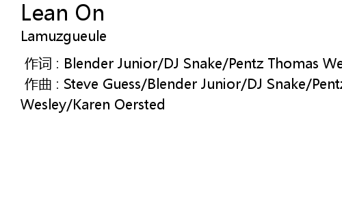 | [00:00.000] | zuo qu : Steve Guess Blender Junior DJ Snake Pentz Thomas Wesley Karen Oersted |