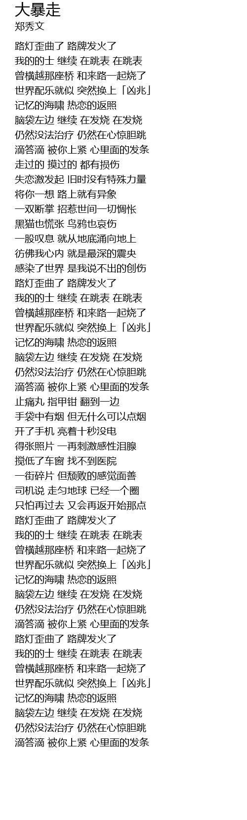 | [02:32.670] | 路灯歪曲了 路牌发火了 |