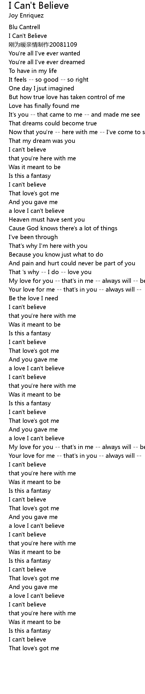 | [01:12.50] | Now that you' re here with me I' ve come to see |