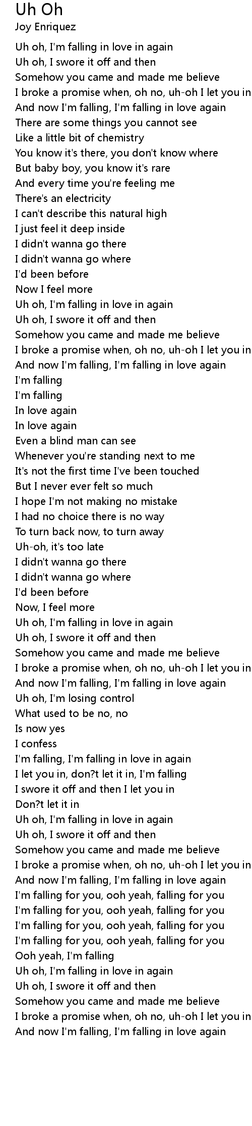 Uh oh, I'm falling in love in again |