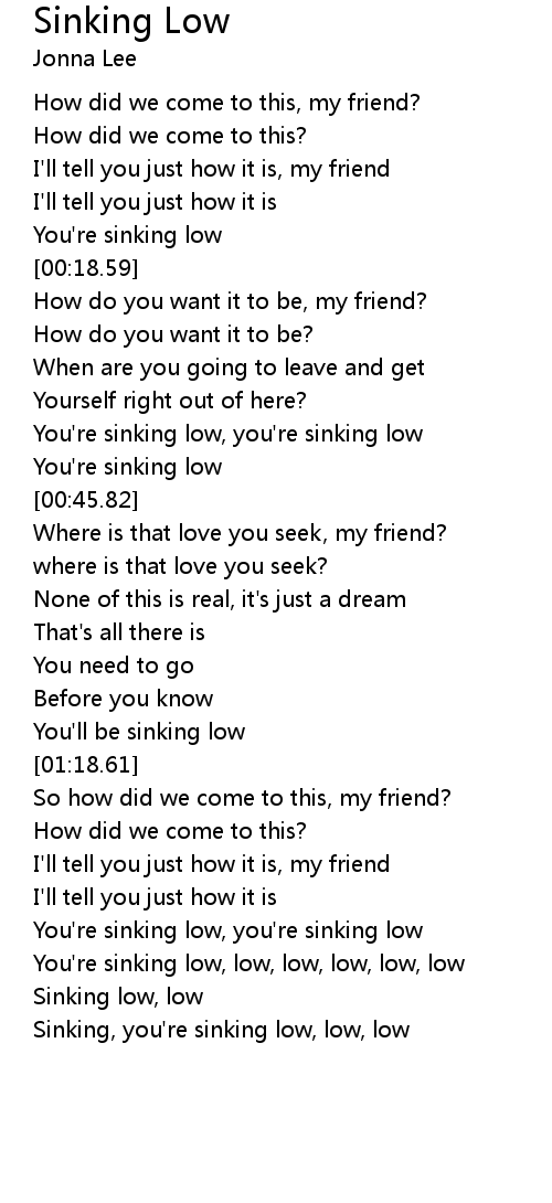[01:44.07] You're sinking low, low, low, low, low, low