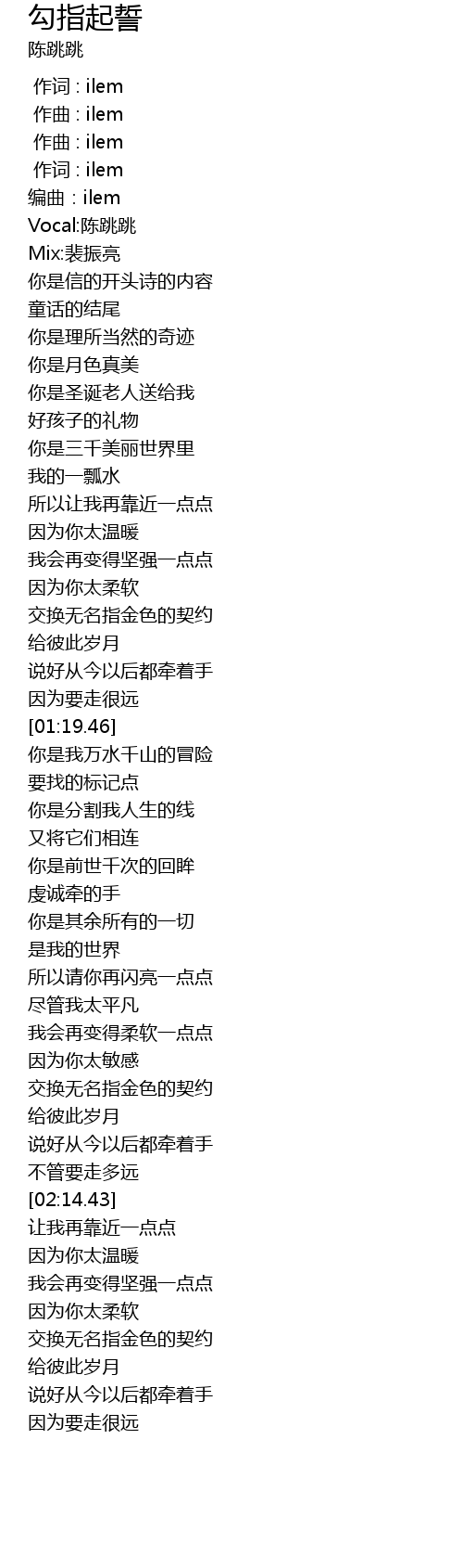 | [02:03.12] | jiāo huàn wú míng zhǐ jīn sè de qì yuē |