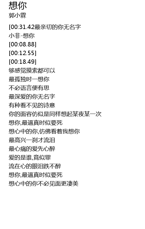 | [00:04.87] | xiǎo fēi xiǎng nǐ |