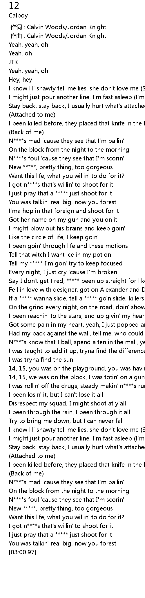 | [00:47.91] | I just pray that a ***** just shoot for it |