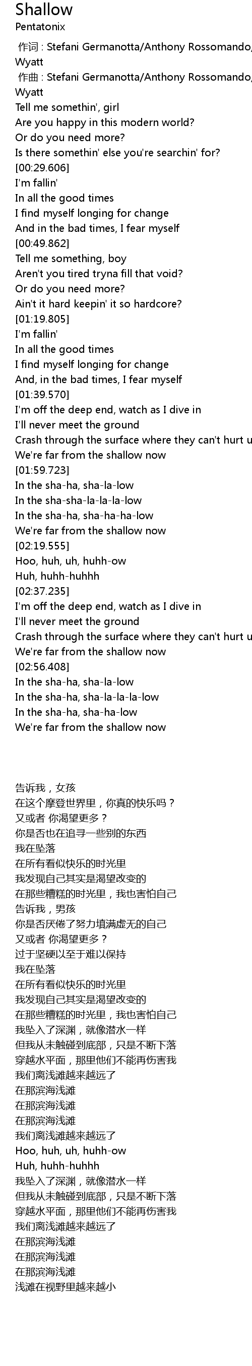 | Song | Shallow |