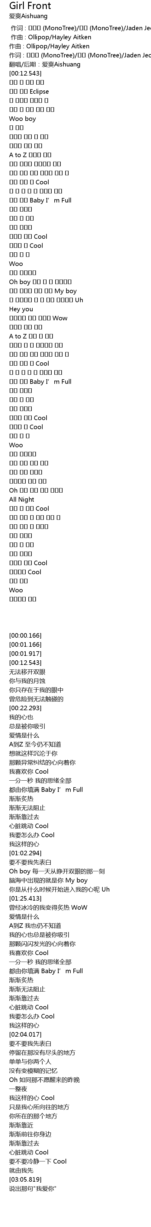 | [00:01.166] | zuò cí : MonoTree MonoTree Jaden Jeong |