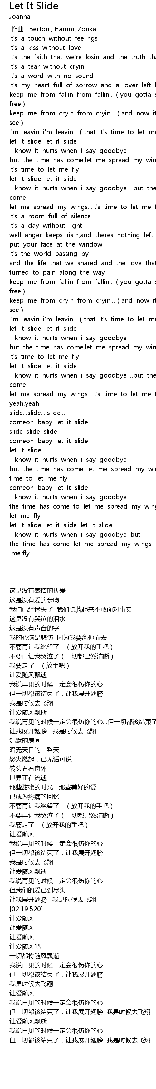 | [01:53.614] | let it slide let it slide |