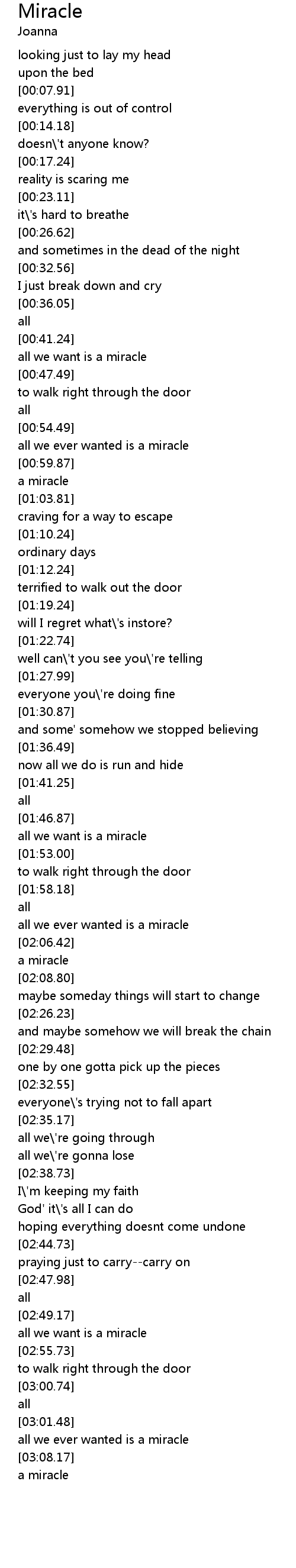 all we ever wanted is a miracle |