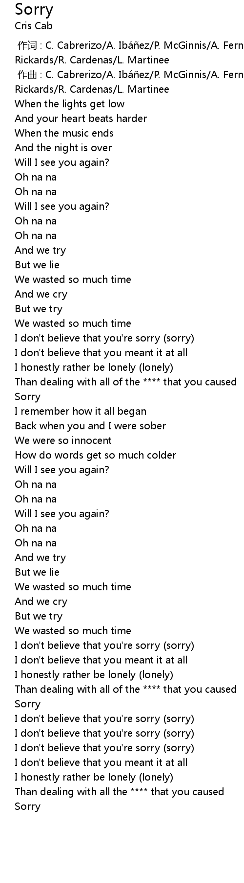 | [00:40.45] | I don' t believe that you' re sorry sorry |