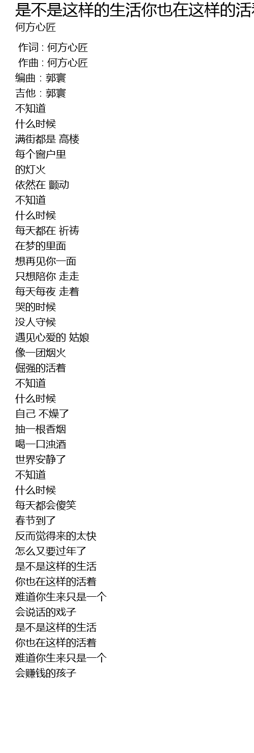 | [00:00.000] | 作词 : 何方心匠 |