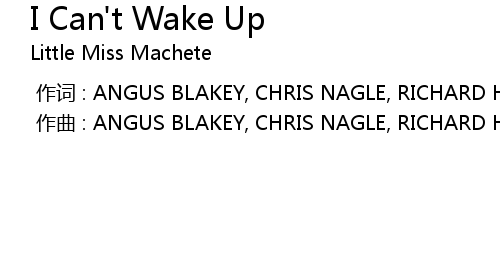 | [00:00.000] | 作词 : ANGUS BLAKEY, CHRIS NAGLE, RICHARD HARRIS & DUNCAN ANNIBLE |