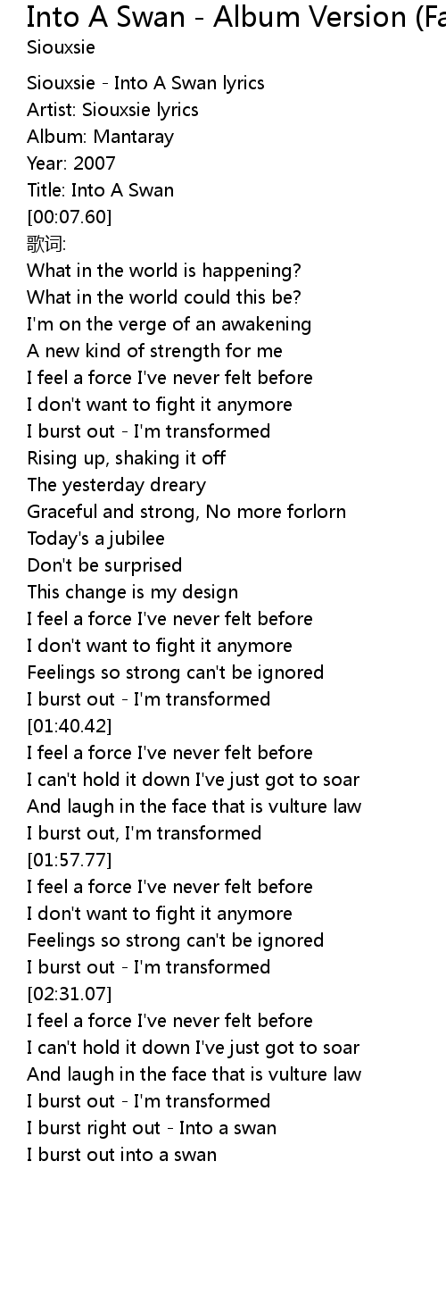 | [02:48.39] | I burst right out - Into a swan |