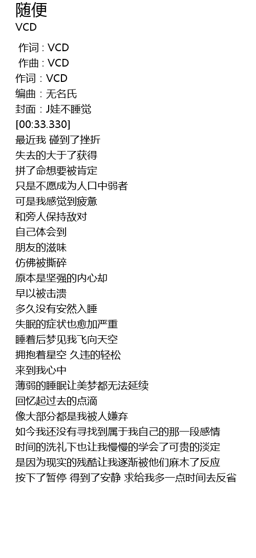 | [00:30.830] | fēng miàn: J wá bù shuì jiào |
