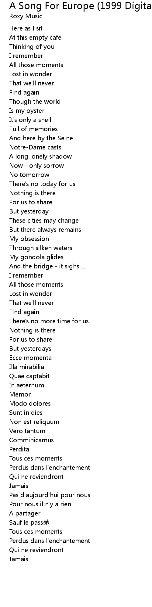| Song | A Song For Europe (1999 Digital Remaster) |