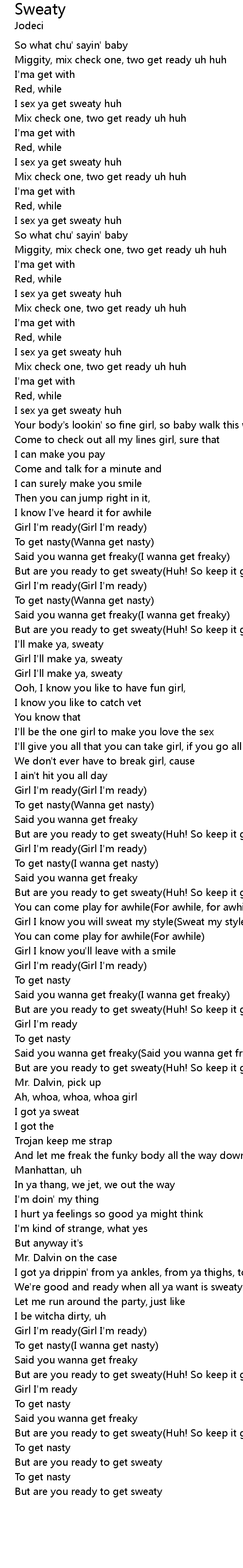 But are you ready to get sweaty(Huh! So keep it goin') |