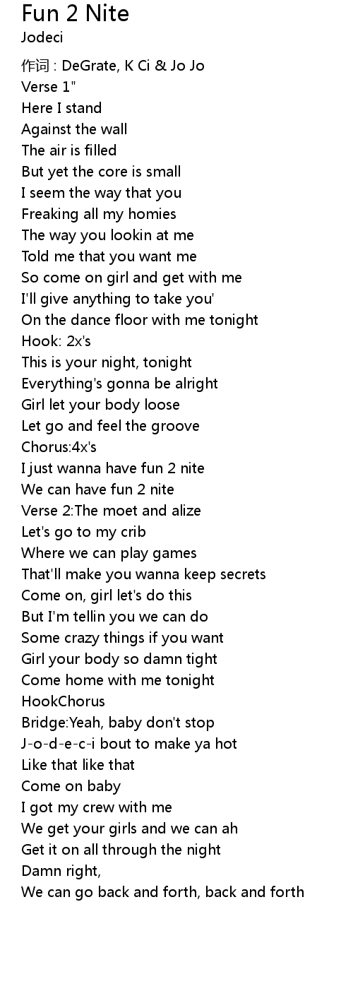 | I just wanna have fun 2 nite | |