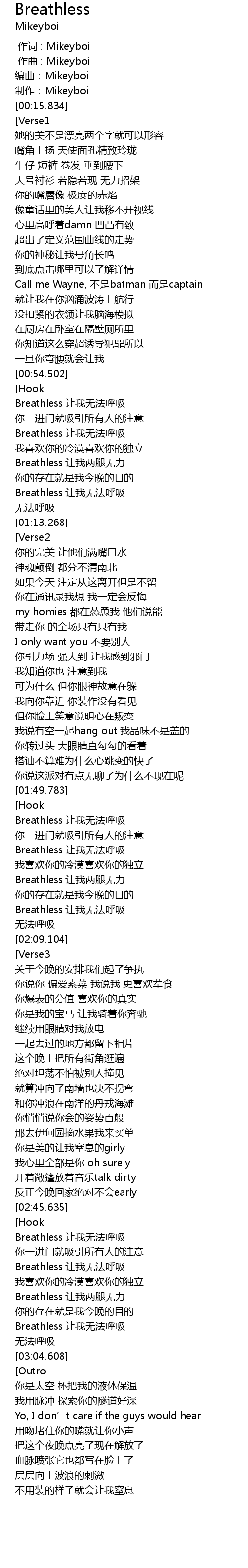 | [03:01.354] | Breathless 让我无法呼吸 |