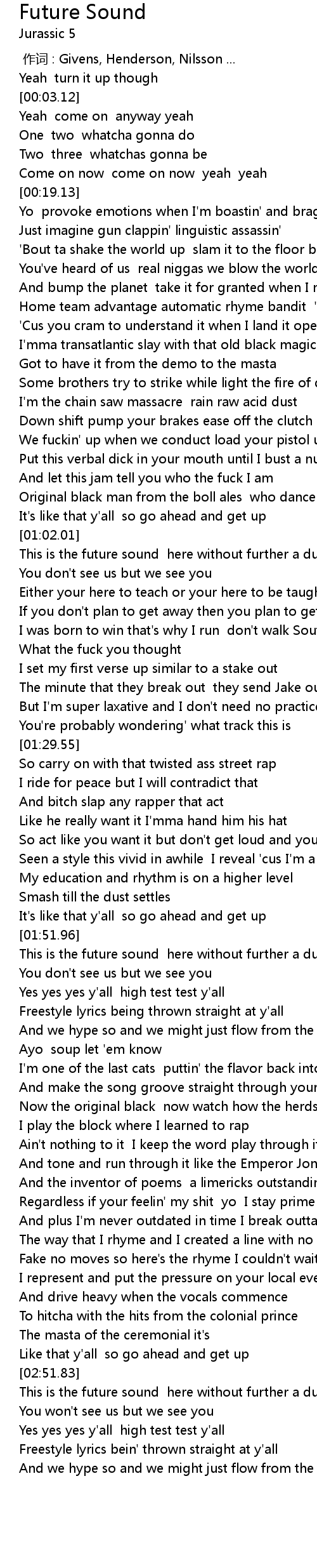 | [00:55.23] | And let this jam tell you who the fuck I am |