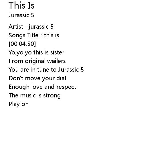 | [00:07.50] | You are in tune to Jurassic 5 |